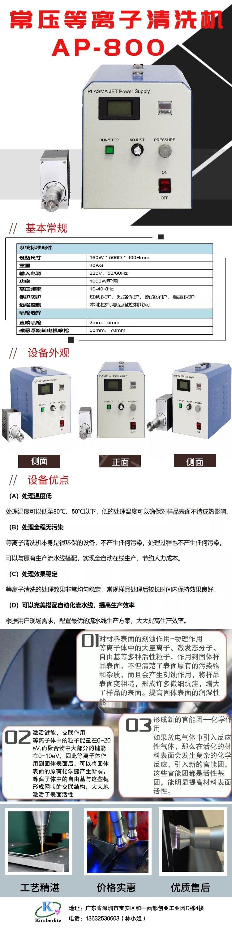1.噴射出的等離子體流為中性,不帶電,可以對各種高分子、金屬、橡膠、PCB電路板等材料進行表面處理;